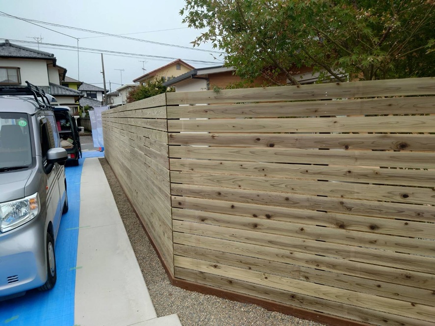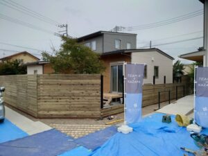 こちらは、植下モデルです。 外構工事の最後のウッドフェンス工事がはじまりました。(ビフォー写真)