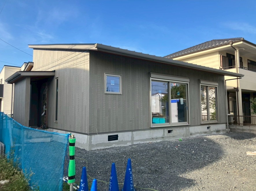 こちらは、栃木市のS様邸です。 足場も取れ外構工事もはじまるところです。