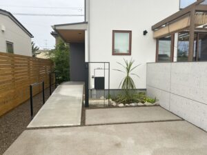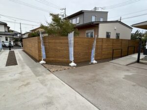 お隣のO様には、外構工事が完了するまで大変ご迷惑おかけしましが、ウッドフェンスも無事完成しました。