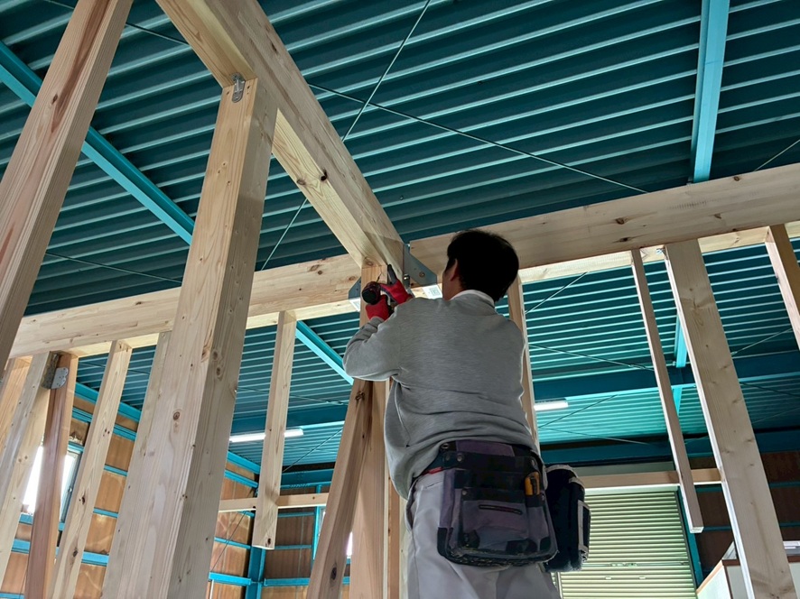 小山市の現場も進んでいます。 2025年10月23日 最終更新日時 : 2025年10月23日 team-K風間 最近急に寒くなりましたね こちらは、倉庫の間仕切り工事です。 今週から「タツミー」棟梁応援で入りました。 よろしくお願いしますね(^^♪ こちらは、新規プロジェクトの小山市の現場になります。電線の確認(電柱絡み)等、現地調査を行いました。 こちらは、土台敷が終了しました。小山市のK様邸です。陽が短くなり暗くなるのが早くなりました。 夜なべしているわけではないのですが・・・ 明日は、土台敷の模様をUPします。m(__)m