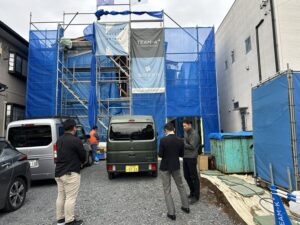 建て方工事は、27日でしたので大屋根の野地(ルーフィング)も終わりっている状態です。 今日は、昼にK様に現場に足を運んで頂き~上棟式(職人顔合わせ行いました)