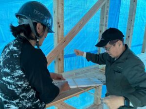 「アキラー」棟梁が担当棟梁になります。 「ぬっきー」も土台敷~野地まで一緒に頑張ってくれて助かりました。