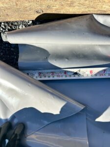 今日は、1現場の報告をします。免鳥町のT様邸です。 基礎のターミダンシートを敷きました。重なり150の証拠写真です。