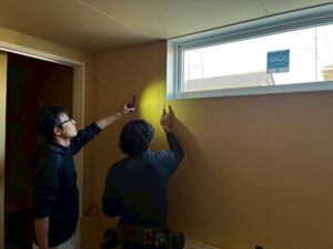 ネクストステージさんの検査員の方に検査して頂きました。 木工事終了時のボード検査になります。「アッキー」検査項目チェック