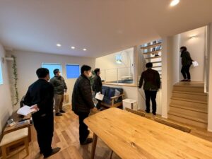 こちらは、木工事が終わった段階のところを見学してもらいました。