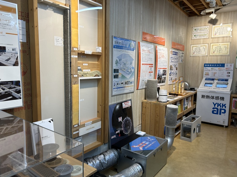 室内は、キッチンをはじめ、構造材、換気材等展示しています。 現物がありますと、打合せが楽ですね(^^♪