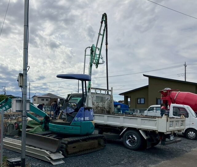 こちらは、免鳥町のT様邸です。立ち上がりの検査も終わり 無事コンクリート打ち完了です。
