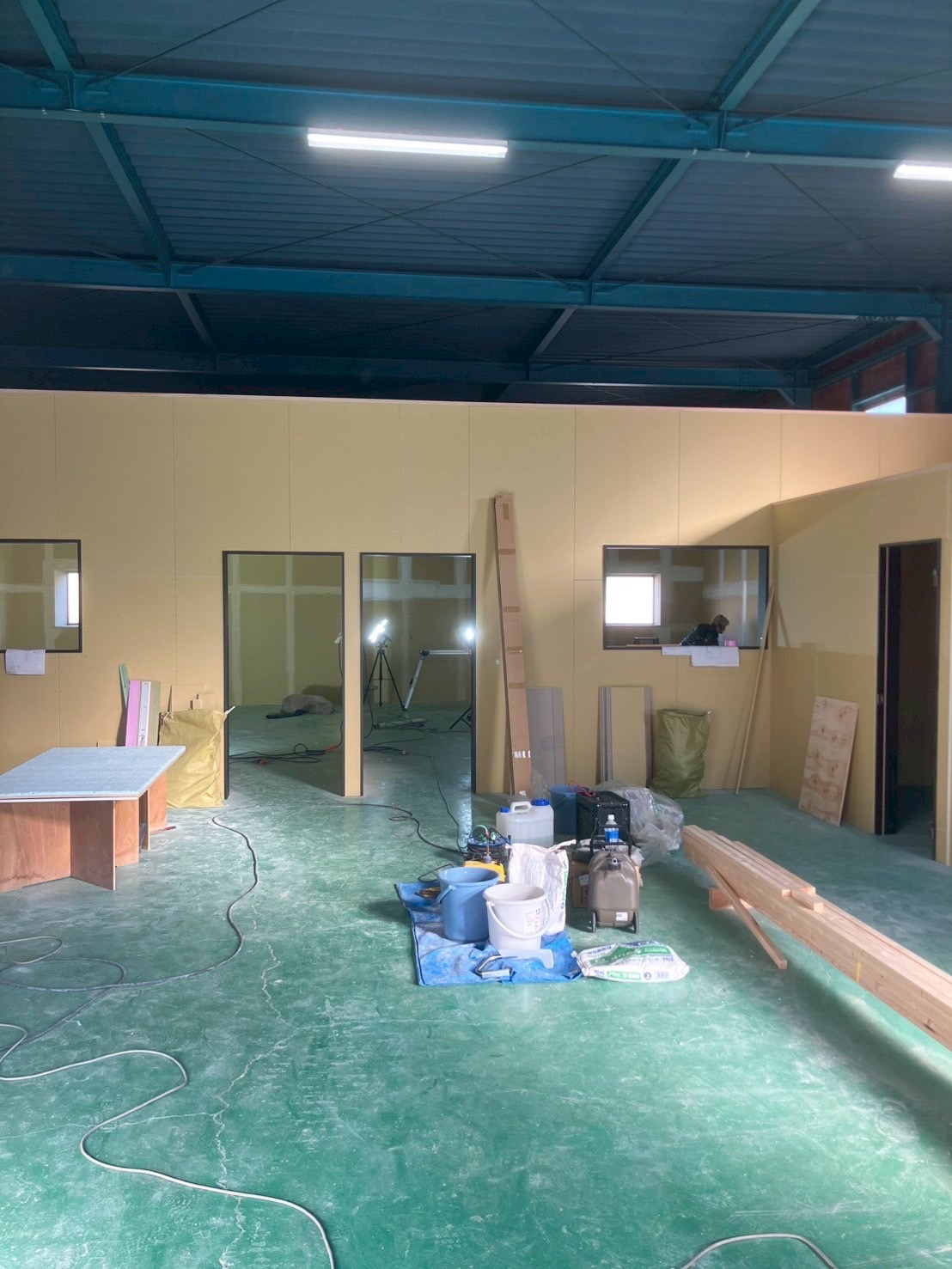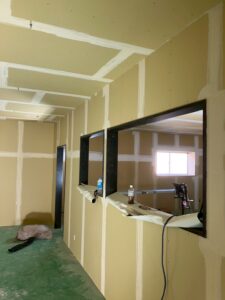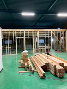 こちらは、大橋町の倉庫の中の間仕切り工事です。 骨組みができてから現状までの報告をします。