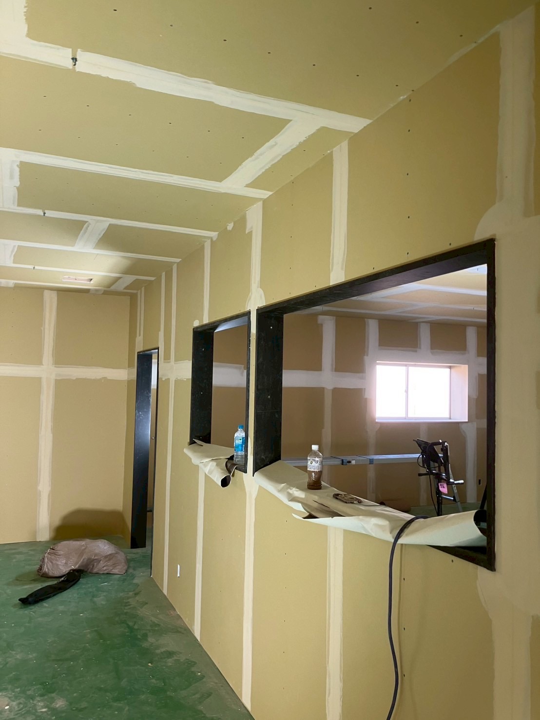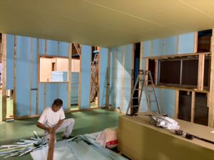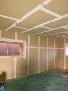 現在は、壁のボードも完了して内装屋さん入りはじめました。