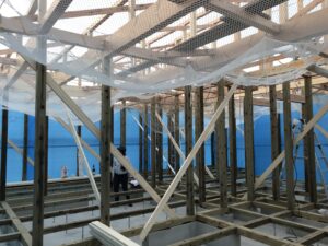 上棟式の準備です。この段階で室内土足厳禁となっています。