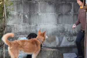「キヨミー」がわんちゃんに餌をあげようとしています・・