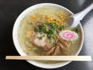 6日(木)は、大祝町のK様邸の前(西)の「しんざん」ラーメンさんで塩ラーメン!