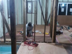 室内では、「アンボン棟梁」が床張りをはじめ頑張っています。(^^♪