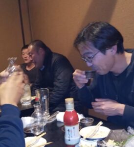 忘年会「パッパー会:やっちゃば」で飲んでいる「うし君」をUPします。