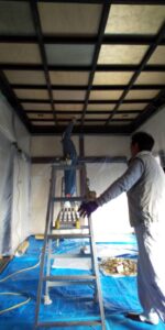 以前UPしたかと思いますが、工務店作業場の前の金山神社の天井張り替え工事