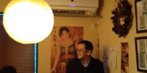 焼き鳥屋さんで時間限定で貸し切りで行いました。簡単な挨拶をさせて頂きました。