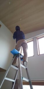 吹抜けの勾配天井へカッシャーを付け平行に洗濯物をあげる工事です。