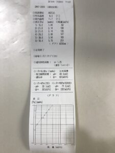 この結果から建物の体積を計算~入力してC値(気密測定の数値)がでます。
