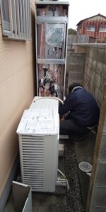 今日は、OBのお客様のU様邸のエコキュート交換工事を行いました。