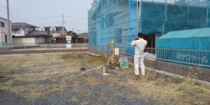 下地の砂利工事からはじまりました。地盤は、調査の結果良好でした(^^♪