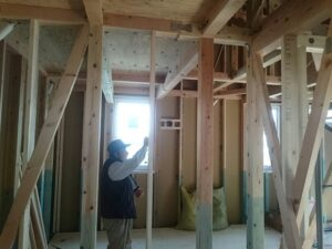今日は、住宅保証機構の検査員の方に躯体検査してもらいました。