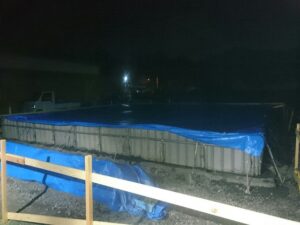 シート養生OKです。(^^♪ 明日までお天気がわるいようですが、無事に打てて良かったです。