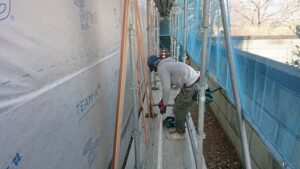 「アンボン棟梁」外回りの胴縁打ちをはじめました(2日前の写真です)
