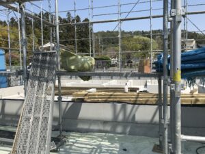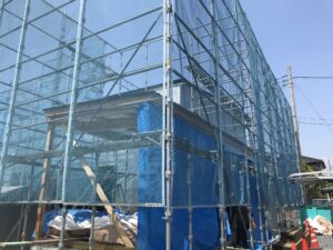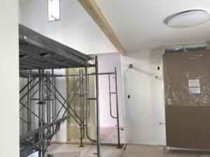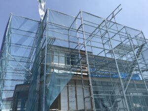 室内の吹抜け部分は、足場(藤井工務店の便利な足場)がかかっていいました。