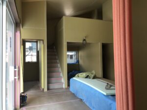 室内は、ウレタン工事もおわり「かっちゃん棟梁」も天井野縁や、床はり