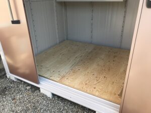 以前の物置が30年以上使い床がボロボロ状態になってしまったことから今回は、合板を床の敷きました。
