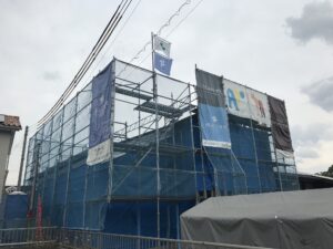 「平屋の用で2階建て」の現場です。