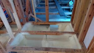 1階の北の屋根は、2階の耐力壁を貼ってからの施工になりますので