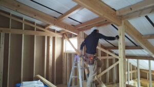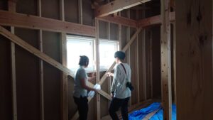 「池はん」が給気口の場所の指定をしてもらっている写真です。