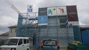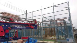 今日は、材料搬入と、柱建てまで行いました。明日お天気悪そうです(*_*; なんとか少しの雨にしてほしいですね