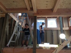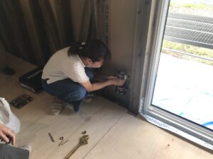 ご主人様がホールダウンのビス止めをした後は、奥様もビス止めを体感!