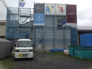 ⑤こちらは、田沼町のS様邸です。外壁工事ももう少しというところまで進みました。