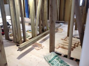 室内は、ボードを貼る段取りで木工事追い込みです。