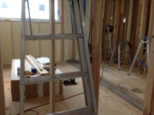 室内は、脚立での作業中なので脚立したに加工のくずがありますが