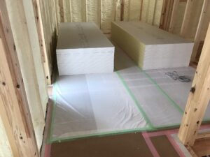 養生シートを養生板の上から敷いています。バッチリですね(^^♪