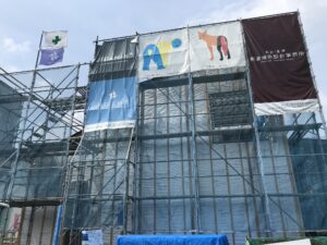 これから、現場幕~社旗等を掲げます!