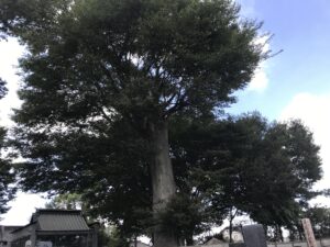 お墓の近くの鹿島神社のケヤキの木があります。