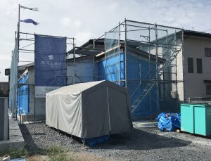 田沼町のK様邸です、26日に足場か解体されはじめて現場に