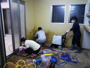 写真は、オフィスのストックルームです、洗浄~消毒をしています。