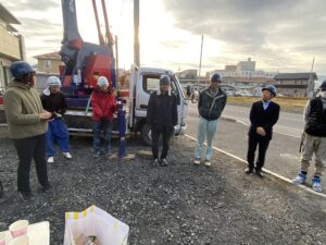 今日のメンバーの記念写真を撮りました! 自分が持っている清めのお酒は、