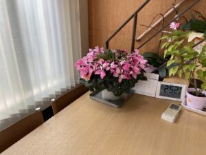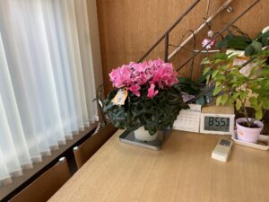 昨日の本社の「シクラメン」です。陽当たりが良すぎる為か、だらーんとねてしまいました。
