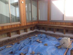 中庭にもデッキがあります。こちらも完成しました。