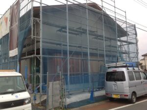 仕上げの壁がもい少しで完成しますといよいよ足場解体です。