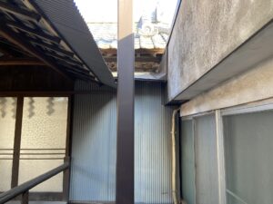 今日は、神社と、公民館の間の屋根の改修工事を行いました。