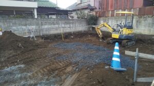 こちらは、上台町のM様邸です。先週から表層改良を行い~基礎工事が進んでいます。