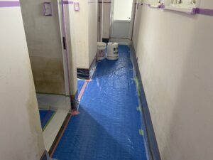 浸水した壁を消毒して~下地内容を確認したうえでの塗装工事です。浸水しました高さの